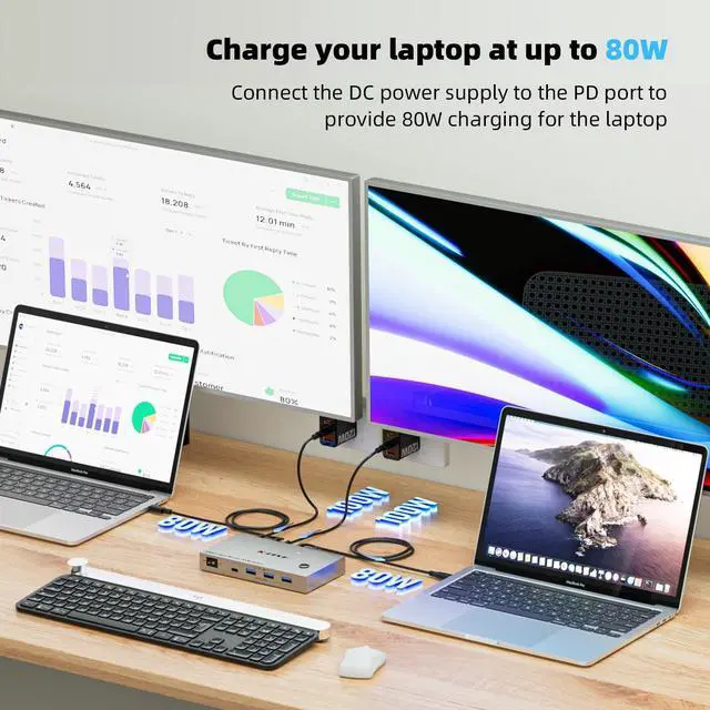 MST FunctionExperience ultimate convenience: each laptop connects to this KVM switch dual monitor USB C with just one full-featured USB-C cable to drive two HDMI displays. This KVM switch 2 monitor 2 computer USB C utilizes MST technology. Windows laptops support two independent screens, while macOS (without MST) only duplicates the same image. Mac M1/M2 does not support dual external displays. Please verify your specific Mac model supports dual displays ^^ Stunning 4K@60Hz Visuals & 5Gbps Data TransferEnjoy crystal-clear, high-resolution visuals. This USB C KVM switch 2 monitors 2 computers delivers up to 4K@60Hz with deep color 4:4: 4 support different resolutions. The integrated hub offers 5Gbps transfer speeds and securely connects keyboards, mice, and storage. For the better signal integrity, we recommend using high-quality, shorter USB C/HDMI cables with this dual monitor KVM switch USB C ^^ 80W PD Fast Charging & 2 Switching MethodsKCEVE USB C KVM switch charges your laptop during work. This KVM switch USB C HDMI provides up to 80W of PD fast charging for your laptop via its PD port (requires your own PD 100W adapter). Switch between your two computer in seconds using the KVM laptops panel button or included 1.5 m wired remote. An LED clearly indicates the active source ^^