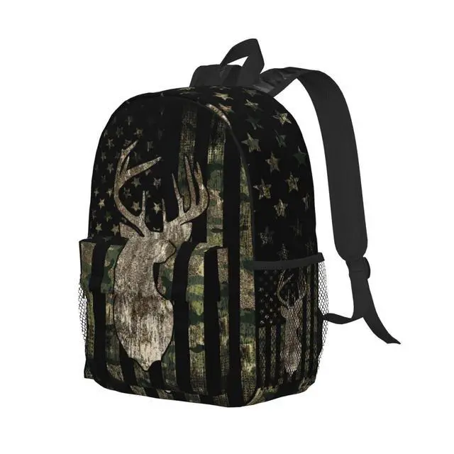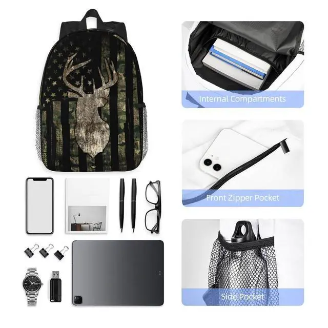 YANGZHI Camouflage Hunting Tactical Deer Camo American Flag 15 Inch Backpack Laptop Travel Bag For Men Women With Multiple Pockets Casual Hiking Gym Sport