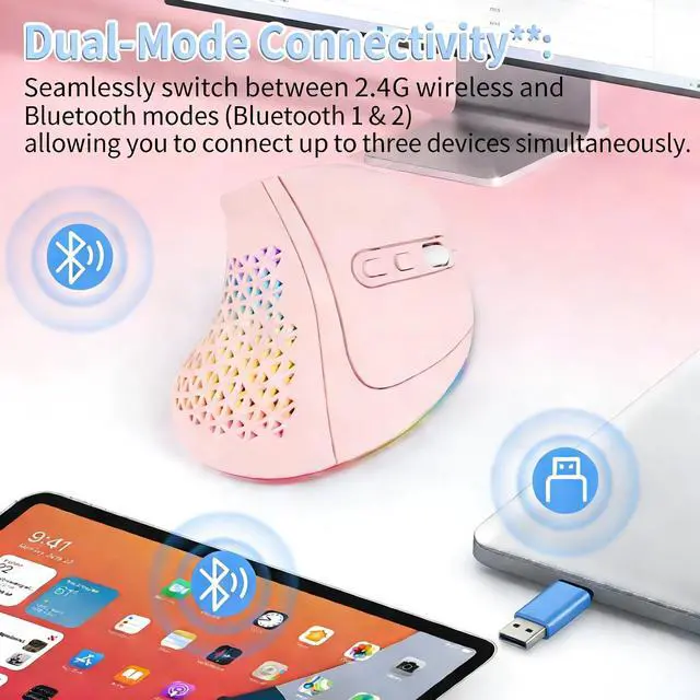 ^^ **Dual-Mode Connectivity**: Seamlessly switch between 2.4G wireless and Bluetooth modes (Bluetooth 1 & 2), allowing you to connect up to three devices simultaneously.