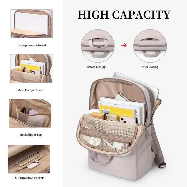Pockets: The backpack has a main compartment, one inner slip pocket, one mesh zip pocket, an inner zip pocket, one front zipper pocket, a back slip pocket, a back zip pocket, and two side pockets to keep your items organized and easier to find. A separate laptop compartment at the back holds 15.6 Inch, 15 Inch, 14 Inch, and 13 Inch Laptops ^^