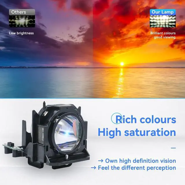 COMPATIBLE MODULES: for PANASONIC PT-D5000 PT-D5000U PT-D5000UK PT-D6000 PT-D6000ELS PT-D6000ES PT-D6000LS PT-D6000S PT-D6000U PT-D6000ULS PT-D6000US PT-D6710 PT-DW530 PT-DW530E PT-DW530U PT-DW6300 PT-DW6300ELS PT-DW6300ES PT-DW6300LS PT-DW6300S PT-DW6300UK PT-DW6300ULK PT-DW6300ULSC PT-DW6300US PT-DW640 PT-DW640E PT-DW640L PT-DW640U PT-DW640UK PT-DW640ULK PT-DW730 PT-DW730E PT-DW730EL PT-DW730U PT-DW730UK PT-DW730UL PT-DW730ULK Projector Lamp ^^ The new generation optimized wick design has better brightness, durability, and stability. Can be used for about 5000 hours, with a brightness increase of over 90% ^^ In pursuit of higher quality, the bulb is installed in a high-quality high-temperature-resistant housing, which is safe to use and easy to install. It can be easily replaced when the projector is turned off, just like taking out an old lamp, exactly matching ^^ Each product has undergone 100% performance testing before leaving the factory to ensure that each product can run with high performance and is brighter and more reliable than other ordinary projector bulbs on the market ^^ Zmstlamp is a professional manufacturer and supplier of projection light sources. We will provide you with a 220-day warranty and a 30-day money-back guarantee, without any conditional feedback within 12 hours, we will do everything we can to make you satisfied.