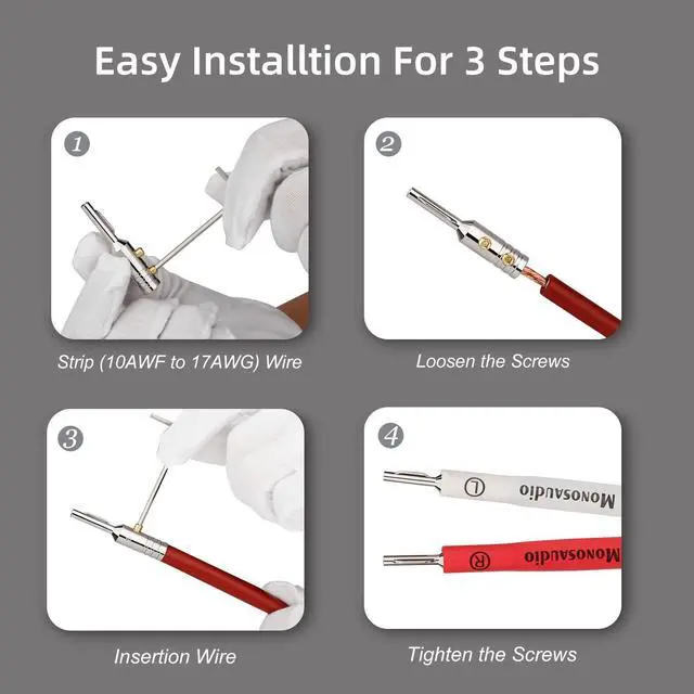 Monosaudio B80R 4 pcs Banana Plugs Pure Copper Screw Locking Speaker Plug Connectors for Speaker Wire, Home Theater, AV Receiver, Amplifiers and Sound Systems(Rhodium Plated)