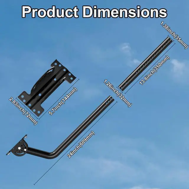 Built for Stability and StrengthAt the heart of this mounts design is its triple-screw locking mechanism, providing rock-solid anchoring for devices weighing over 50 lbs. Say goodbye to wobbly mounts or poor signal reception caused by unstable installation. The robust iron construction paired with a reinforced pivot design ensures long-lasting durability, making it ideal for high-wind or harsh weather environments. Modular Height Adjustment for Custom InstallsVersatility is key. The main mast stands 24 inches tall, with the option to add 12-inch extension poles to increase height as needed (included or optional depending on your configuration).