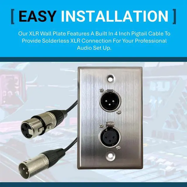 Whether you're setting up a recording studio, live sound system, or home theater, this audio wall plate has got you covered. With its sleek and professional design, the DIYTECH XLR Wall Plate Solderless not only delivers exceptional functionality but also adds a touch of sophistication to any space. Say goodbye to messy cable management and hello to a clean and organized audio setup. Don't settle for subpar connections - invest in the best with the DIYTECH XLR Wall Plate Solderless. Make your Pro Audio installation a breeze with this top-of-the-line XLR female wall plate that is truly solderless.