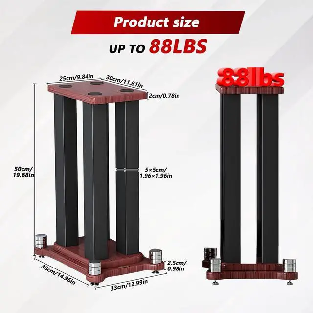 Wide Compatibility -- Bookshelf speaker stands Equipped with a spacious top plate of approximately 9.84 x 11.81 inches, supporting up to 40 kg/88 lbs, it is compatible with most satellite speakers, bookshelf speakers, and monitor speakers, and supports most mainstream brands and models, meeting the needs of both home and professional scenarios