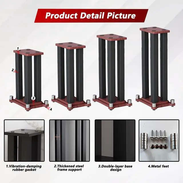 Professional Sound Quality Optimization -- Speaker stands for large speakers Utilizing high-density board and an all-steel composite structure, it effectively dampens vibrations. The steel structure supports sand filling to enhance vibration damping, effectively reducing sound coloration, making mid-high frequencies more transparent and low frequencies more solid, improving professional monitoring accuracy