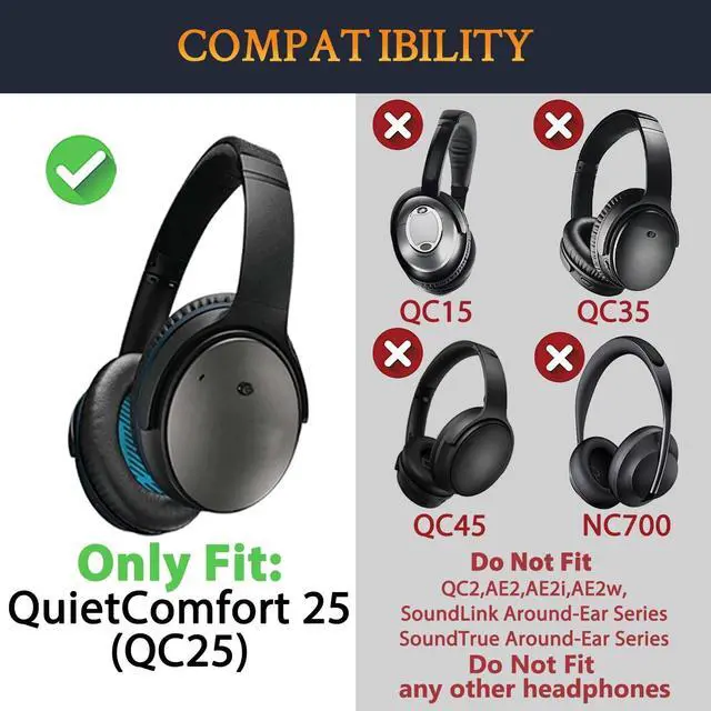 COMPATIBLE WITH QuietComfort QC25 Headphones only. DO NOT FIT B-ose QC15, QC2, QC35, QC45, B-ose AE1, B-ose AE2, B-ose NC700, or any other B-ose model Headphones.