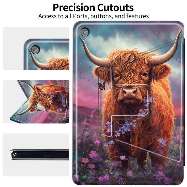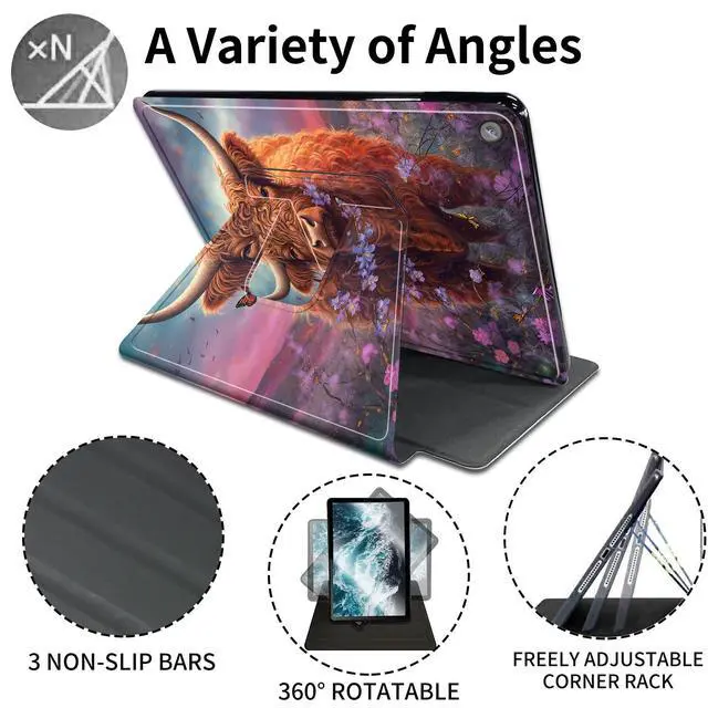 CompatibilitySpecifically designed for All-New Kindle Fire 7 tablet (12th generation, 2022 release) latest model 7Only. Not for old version Fire 7 case 5th/7th/9th Generation (2015/2017/2019 Release). ^^ 360 Rotating KickstandBuilt-in Adjustable Kickstand / Multiple Viewing Angels, 360 degrees rotating and Three anti-slip grooves allow the device to stand both vertically and horizontally with different viewing angles, providing comfortable viewing angles when watching videos, gaming etc. ^^ Comprehensive Protection Our tablet protective cover made of Premium synthetic PU Leather + TPU hard back shell to protect yOur tablet(12th generation, 2022 release) from scratches, dirt and providing you an easier lifestyle with our quality case.