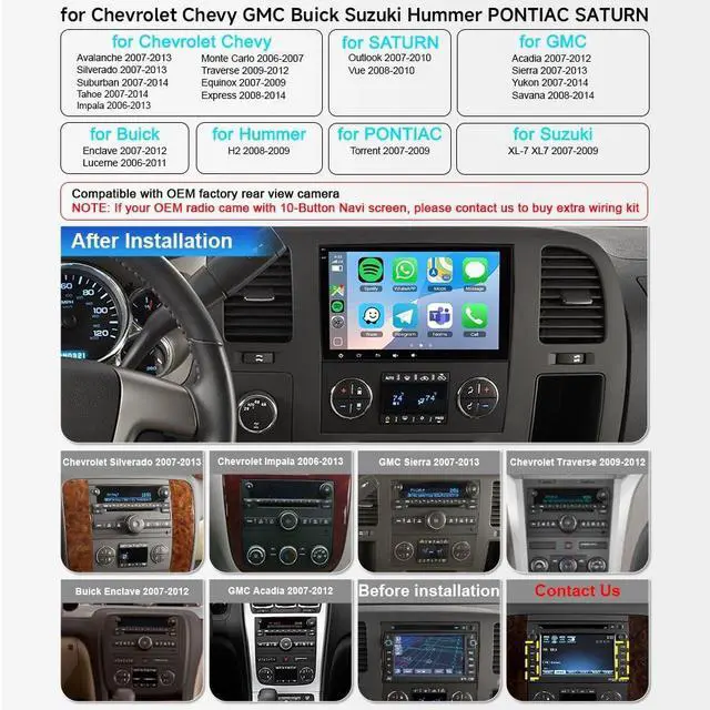 Applicable Car Models For Chevy Silverado 1500HD 2500HD 3500HD (2007-2013) (Second Generation); For Chevy Tahoe (2007-2014) (Second Generation); For Chevy Equinox (2005-2009) (First Generation); For Chevy Suburban (2007-2012) (Tenth Generation); For Chevrolet Avalanche (2007-2013); For Chevrolet Express Van (2008-2019); For Chevrolet Impala (2006-2013); For GMC Sierra (2007-2013); For GMC Savana (2008-2019); For GMC Yukon (2007-2014); For GMC Acadia (2007-2012); For Buick Enclave (2008-2012) ^^ Smart Connectivity at