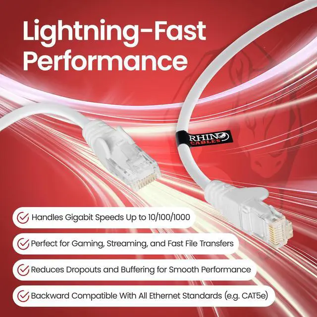 SUPER-SPEEDY CONNECTION: Experience lightning-fast data transfer with our CAT6 network cables. These fast ethernet cables handle gigabit speeds up to 10/100/1000, reducing dropouts and buffering for a smoother online gaming experience and quicker file transfers. Perfect for both work and play, a CAT6 Ethernet cable ensures sure your network always performs at its best.