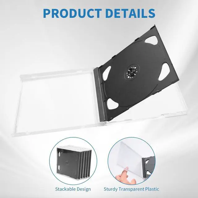 Design Features: these clear plastic CD jewel cases come with a double-hinged design and 2 disc hubs, allowing for convenient storage of 2 discs per case; they are equipped with an easy-open function to prevent disc damage during access, and they also protect from dust and scratches ^^ Protection for