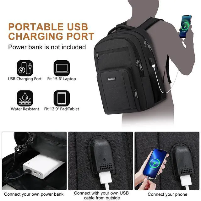 ^^ USB Port Design: Charging computer backpack with an external charging port & built-in charging cable, this laptop backpack with a USB charger port provides you a more convenient way to charge your electronic device via connecting your own power bank while walking or cycling. Practical gifts for students, friends, mothers, and fathers, etc. (POWER BANK is not included) ^^ Comfortable