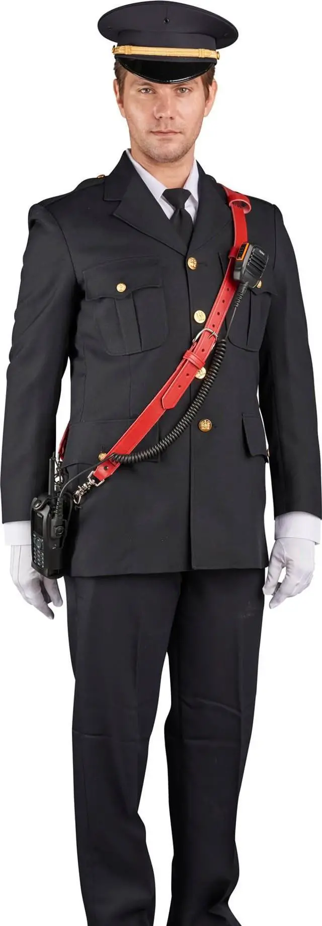 DescriptionPerfect Fit Shield Wallets Red leather radio strap for firefighters is made in the USA with high quality 100% genuine leather. Drum dyed red leather keeps color from fading and keep the strap looking new for longer. This strap is available in black leather or black leather with a reflective stripe for added visibility for firemen in the nighttime.