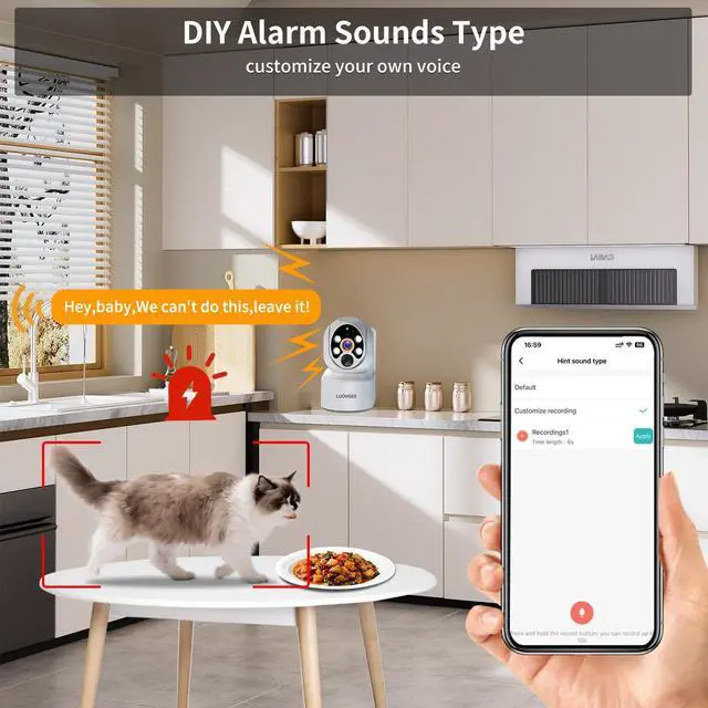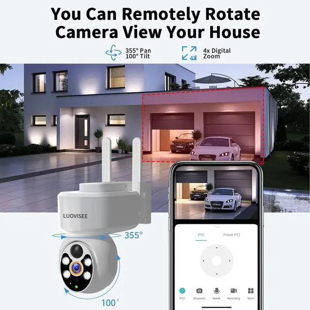 (Note: 5G Wi-Fi is not supported) ^^ Auto Tracking &Human Detection &Customize recording alarm sound typeLuovisee solar home camera with auto-tracking and humanoid detection function, detection area or sensitivity can be adjusted to reduce false alarms. when people come into your house, the camera will follow the person, you could see the whole things start from he/she step in your priority, not just a clip. And also you could manual rotate camera. And also you could set what camera alarm sound type. Motion detection distance is up to 30ft.