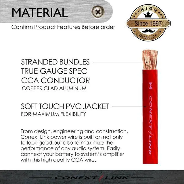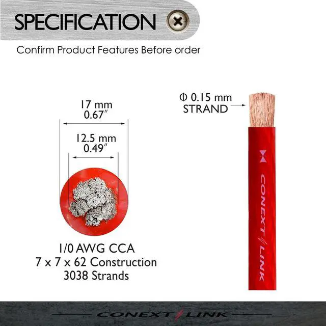 Stranded CCA ( Copper Clad Aluminium ) Conductor with PVC Jacket ^^ Full 1/0 American Wire Gauge, 3038 Strands of CCA ( 0.15 mm) for Conductor ^^ Come in One Continuous Length ^^ High Resistance to Heat, Oil, Chemicals and Abrasion ^^