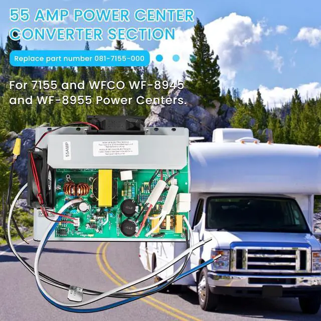 081-7155-000 Power Center Lower Section - 55 Amp Direct Replacement for Models 7155, WFCO WF-8945, WF-8955 Direct Replacement & CompatibilityThis 55 Amp converter section is engineered as a direct lower section replacement for Parallax 7155, WFCO WF-8945, and WF-8955 Power Centers. It seamlessly replaces the original part 081-7155-000, ensuring perfect fit and function for your RV's electrical system.
