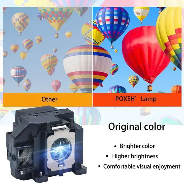 Applicable projector model: for Epson EB-SXW11 EB-SXW12 EB-S02 EB-S11 EB-S12 EB-W02 EB-X100 EB-W12 EB-X02 EB-X11 EB-X12 EB-X14 EX3210 EX5210 EX7210 MG-50 MG-850HD Epson PowerLite 1221 PowerLite EX3210 EX5210 EX7210 H430A H429A H428A H428B H428C H429B H429C H430B H430C H431A H432A H433A H431B H432B H433B H432C H433C VS210 VS310 VS315W EB-X15 EB-W110 EB-S110 EH-TW490C EH-TW480 HC710HD Megaplex MG-50 Powerlite X12+ S11 W12+ X14+ W11+ 1211 1261W moviemate 85HD ^^ luminanceWith A new generation of A+ wicks, the brightness is 50% higher than that of ordinary wicks. ^^ LifeWhile increasing the brightness, it can also extend the life, and the highlight time is 3500-4500 hours. ^^ CompatibilitySometimes you may encounter a situation where the new bulb you bought does not work. This is usually caused by inaccurate matching of production parameters. However, our engineers solved this problem by continuously collecting big data and testing. ^^ AssurePXOEH offers a 200-day warranty and if the bulb fails, we will immediately replace it for free or give you a refund. If you have any further information, please contact us!