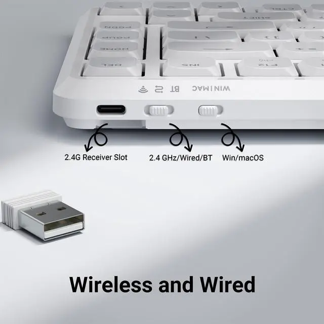 & USB-C Wired: Switch seamlessly between three connection modes. Connect up to three devices via Bluetooth 5.2, or use the ultra-stable 2.4 GHz wireless/USB-C wired modes for gaming and high-speed typing ^^