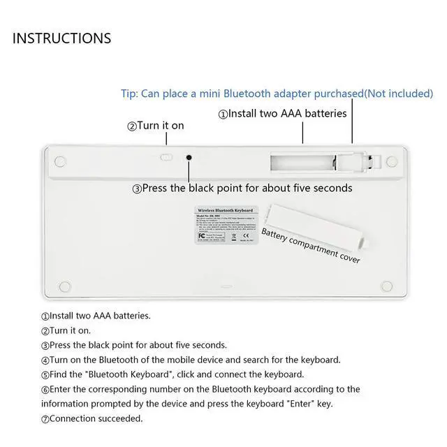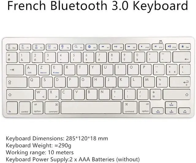 ENHANCE YOUR WORKSPACEWhether you are working from home or taking online courses, our keyboard will give you slim size, comfortable and ergonomic feel. Purpose built for Windows/Apple/Androids Systems, it features a 78-key layout, 6 multimedia keys, 10 languages, 13 shortcut keys, and visually stunning aluminum body. ^^ STRONG WIRELESS CONNECTIONConnect With Bluetooth 3.0, the cordless keyboard establishes a stable connection from up to 32ft away via Bluetooth. This eliminates excess cables and clutter, providing a clean workspace. ^^ A SOPHISTICATED TYPING EXPERIENCEEach keycap on our low profile wireless USB keyboard is designed with a concave shape and scissor flexor technology.