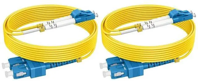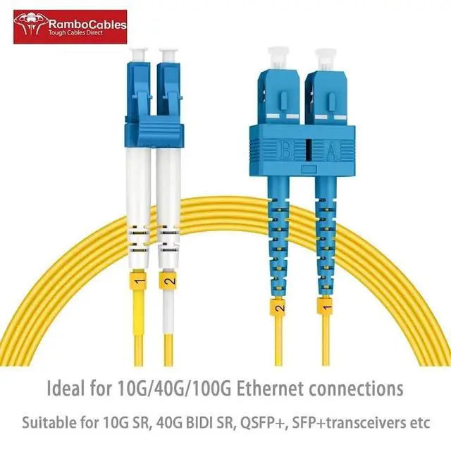 [OS2 SC-LC Single Mode Duplex Fiber Patch Cable 50ft/15m 2 PACK] RamboCables Fiber Optic Patch Cords SC to LC Single Mode Duplex constructed with SC/UPC to LC/UPC connector, 9/125m high rated fiber cladding, 1310/1550nm wavelength, environmentally friendly LSZH Jacket and 2.0 mm Cable Diameter. ^^ [Wide Application] This OS2 SC-LC Single Mode Duplex Fiber Patch Cord is ideal for connecting 10G SR, 40G BIDI SR, QSFP+, SFP+ transceivers etc, suitable for 1G/10G/40G/100G/400G Ethernet connections, saves more space for your high density cabling in data centers, cloud storage networks, server farms, computer room wiring, community network construction and any places fiber optic cables are necessary.
