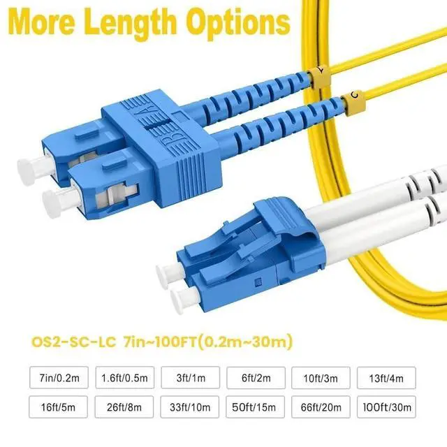 ^^ [Max Transmission Distance] This OS2 Single Mode Optic Fiber Cable can transmit data for up to 10km at 1310nm, or up to 40km at 1550nm. Bandwidth at 1310nm-1550nm 0.36 dB/km- 0.22 dB/km, can operate under temperature -20~70C. ^^ [Industry Standard] OS2 SC-LC Fiber Patch Cord is constructed with LSZH environmentally friendly Jacket. Optimum IL and RL of the Zirconia Ceramic Ferrule ensures stable signal transmission(Accordance with EIA/TIA 604-2, 100% inspected), protecting your network safety. 15mm Minimum Bend Radius improves duct utilization, enabling smaller enclosures. ^^ [RamboCables Tough Cable Direct] RamboCables OS2 sc to lc fiber patch cable meets industry standards for efficient network transmission.