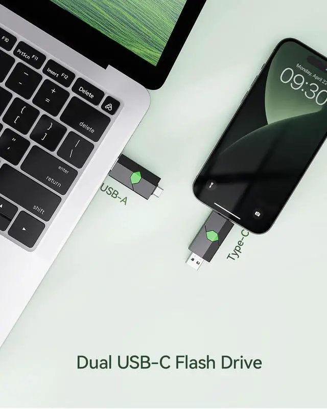 Pack: 2-in-1 USB flash drive with USB 3.0 and USB Type-C connectors, The type c flash drive has Fast speed and high capacity which can be used on computers, pad, laptop, car audio and mobile phones.