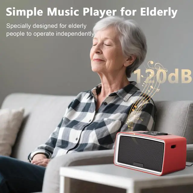 Designed for specific populations This music player is specifically crafted for the elderly, hearing-impaired individuals, and those with dementia or Alzheimer's. It addresses their unique needs with user-friendly features, making music and audio access a stress-free experience for those with limited dexterity, memory issues, or hearing challenges. ^^ High-Quality Sound for All Hearing Needs Experience crisp, distortion-free audio with this simple mp3 player, engineered to deliver up to 120dB volumeperfectly suited for those with hearing loss. Let melodies accompany elderly users through every daily moment, whether theyre relaxing at home, tending to the garden, or savoring quiet afternoons.