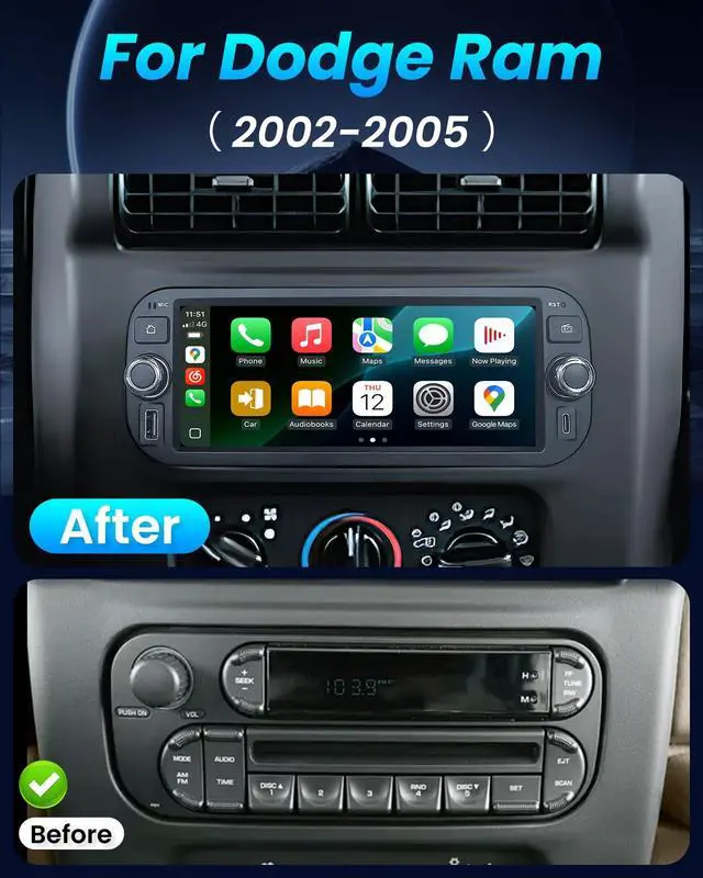 Supports 5G WIFI connection easily access and download online navigation apps and seamlessly operate various apps( YouTube, TikTok, and Spotify etc. ) like your smart phones. ^^ HD Display & FM RadioFor 2003 Dodge Ram radio upgraded 1280*800 IPS Touchscreen compared with the ordinary, the image is clearer and the color is more vivid, which brings you an excellent visual experience. For Dodge Ram 1500 Stereo Built-in FM Radio listen to real-time traffic, news broadcasts, weather forecasts. Enjoy smart and safe driving.