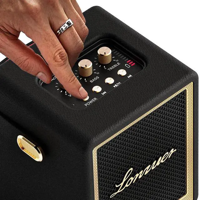 • Lightweight Vintage Retro Portable Design The small portable outdoor speaker is a combination of modern technology and retro classic aesthetics. It was made of wood frame with genuine leather covering the whole speaker body and a front steel metal grill, which make it not only a bluetooth speaker but also a nice home decor for any scenarios. When you need to go to an outdoor party, camping trip, or business trip, you can carry it out very conveniently and comfortably by the slim leather strap handle, which will definitely make you very eyes catching as well