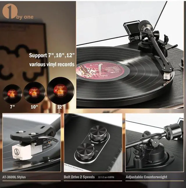 Speed: The turntables belt-driven design minimizes vibration and noise, providing stable, high-quality playback at both 33 1/3 and 45 RPM speeds, so you can enjoy all your favorite records