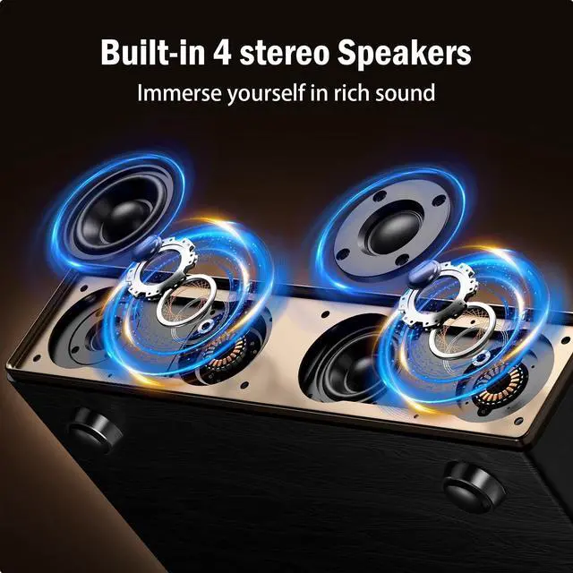 Speakers: This record player features four high-quality, built-in speakers that deliver a full and vibrant sound, allowing you to enjoy your vinyl collection without the need for additional external speakers ^^