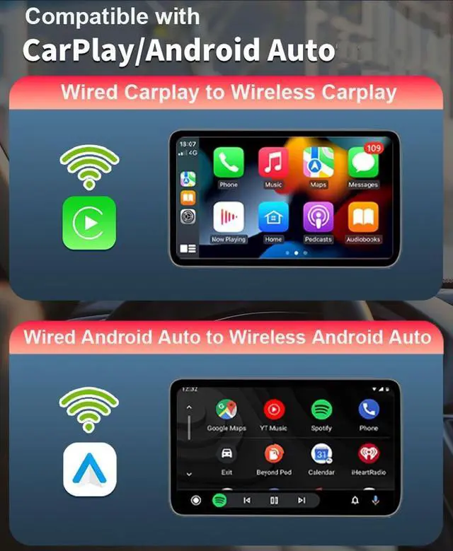 Carplay & Android Auto]: This wireless adapter not only work with Apple iPhone's Carplay but also supports Android Auto (Android System' Smart phone - Samsung, Motorola, Oneplus... ) you can change your connection phone at anytime ^^ [2025