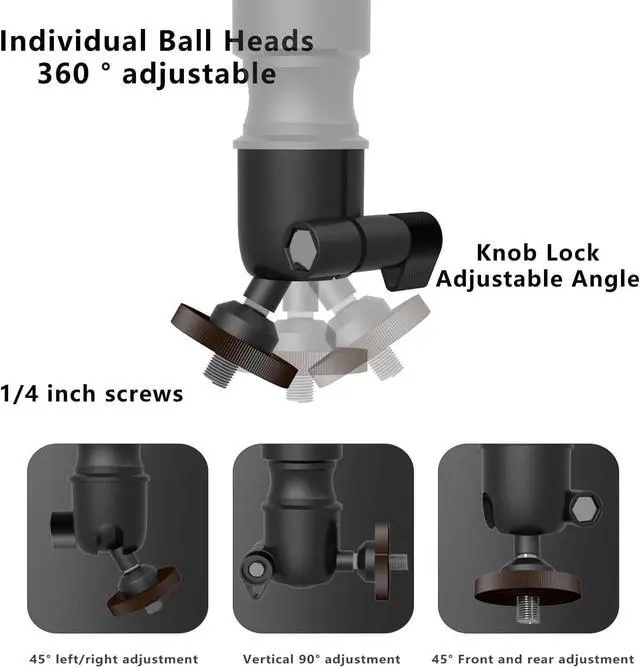 360 Horizontal & 90 Vertical Rotation The ball-head design allows full horizontal swivel and up to 90 vertical tilt, enabling precise angle adjustments for a distortion-free image.