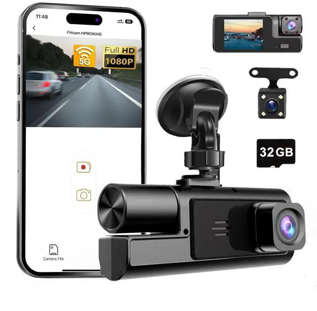 WiFi 1080P 3 Channel Dash Camera for Car Front and Inside Dashcam Car Security Video Recorder,170Wide Angle Vehicle Cam,WDR,G-Sensor,Loop Recording,Night Vision (WiFi 3Channel Dash Cam With 32G Card)