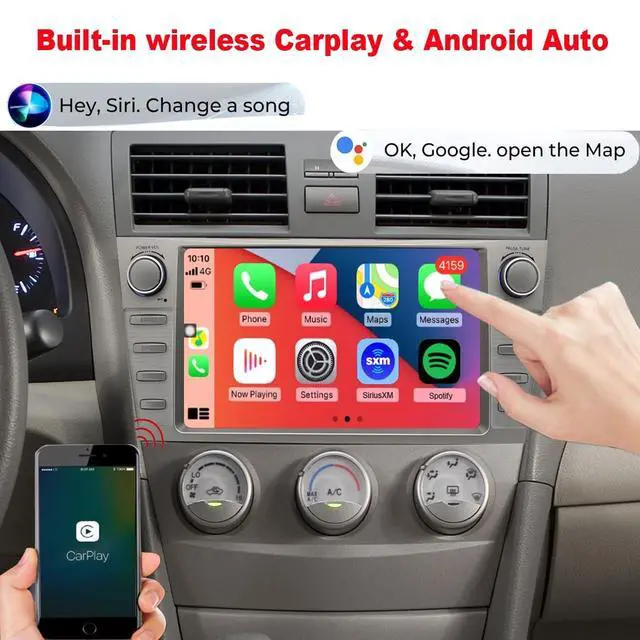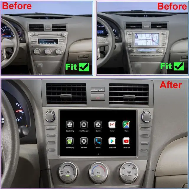Radio fit for Toyota Camry 2007 2008 2009 2010 2011. Plug and play design. Package come with everything you need to install. ^^ 9inch QLED touch screen. Android 8Core CPU. Build in wireless carplay and Wired Android Auto. Support 3rd party APK install. Dual USB ports. FM Radio GPS module wifi back camera available. ^^ Complete Plug-and-Play Kit Includes Everything You Need To Install. Inclduing wires harness, Canbus box, frame and radio unit. Just prepare the pry tool and screw driver will be fine. ^^ Hand free control, retain factory steering wheel control.