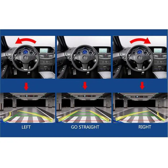 HIGH QUALITY: This reverse camera is high - quality lens with high quality materials, wide viewing angle, ultra HD starlight night vision camera. Have waterproof, heat and cold resistance, impact resistance and other advantages. And after many tests, it can clear the visual blind area; Ensure driving safety and accurate parking ^^ Intelligent Dynamic Trajectory Movement Guided Parking Line: A new dynamic guidance technology that changes the direction of the guide line when a car turns left or right. When reversing, you can see the movement trajectory of the car, which is not controlled by the steering wheel ^^