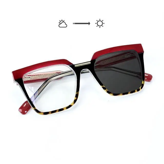 DescriptionBlue Light Blocking & Photochromic Technology: Filters up to 90% of harmful blue light from digital screenscomputers, phones, tablets, and TVshelping reduce digital eye fatigue and visual stress during long screen sessions. Photochromic lenses automatically darken outdoors under sunlight and return to clear indoors.