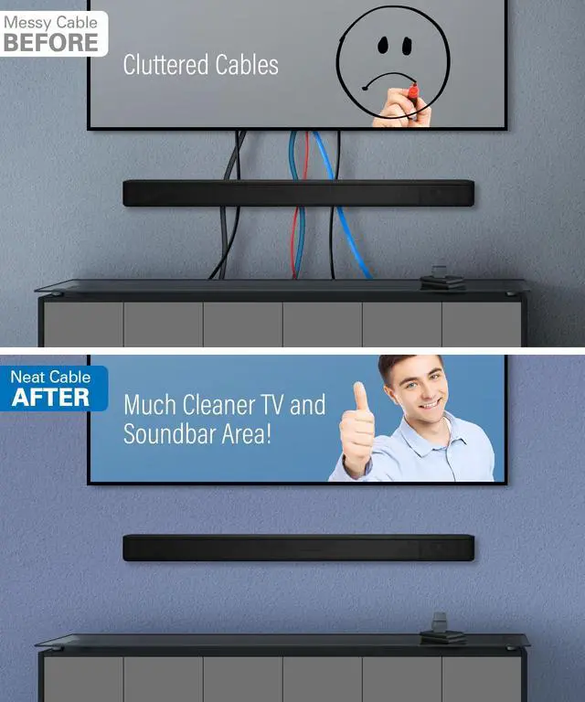 SUPPORTS MULTIPLE CABLES: TV cord hider for wall mounted TV easily holds up to 4 large HDMI cables, or space for more low-voltage cables; Keeps all connections hidden yet accessible, in wall cable management kit ideal for complete media setups ^^ TV CABLE HIDER WALL KIT IS FOR REROUTING CABLES: No worries if your soundbar has an external power supply - this kit has you demand; Weve included a splitter cord so you can easily hide the power brick behind your TV; The soundbar module features a short, slim profile for discreet and efficient cable management (not include sound bar mount) ^^