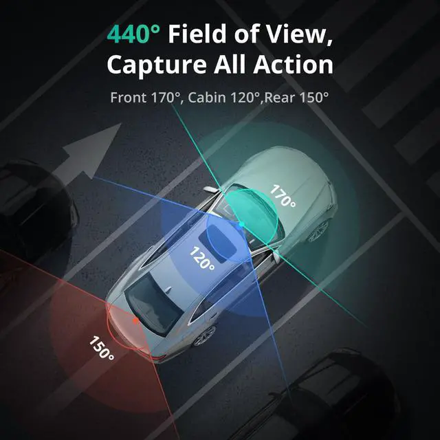 4K 3 Channel Dash Cam360 Dash Cam, featuring 170 front + 120 side + 150 rear coverage for comprehensive evidence collection. With 4K resolution, it captures license plates clearly even at night. Freely switch between dual dash cam (4K + 1080P). ^^ 24/7 Parking ModeBotslab G980H 3 Channel Dash Camera (Requires