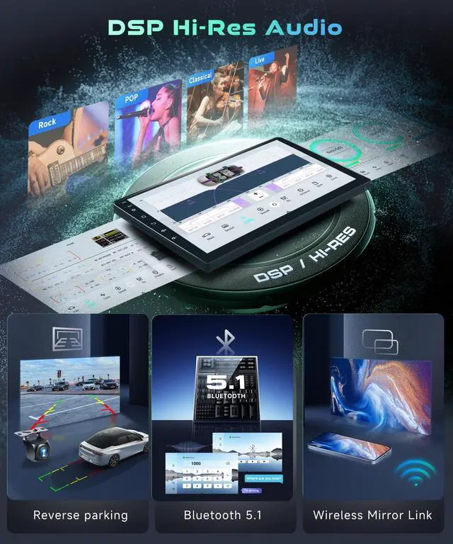 DSP Hi-Res Audio: Studio-grade tuning for your car's interior. Experience 20% deeper bass, crystal-clear vocals, and enhanced acoustic staging. Ideal for music enthusiasts seeking premium audio quality