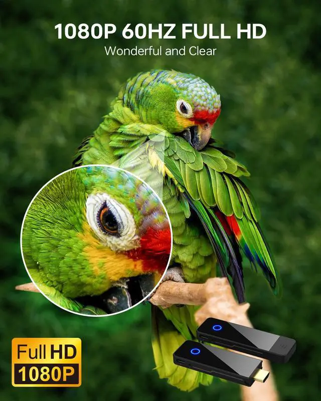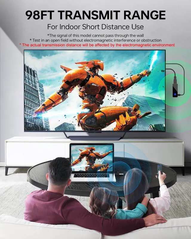 ^^ Stable Wireless Transmission: Enjoy a reliable transmission range of up to 98 feet with only 0.1 -second delay. Designed for smooth video and audio display in the same environment, supporting up to four receivers with one transmitter.