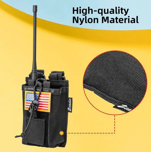 • Durable and Flexible Construction: Made from high-quality 1000D nylon and high-elasticity rubber, this Molle radio holster and radio holder ensures long-lasting performance and reliable protection for your communication devices.