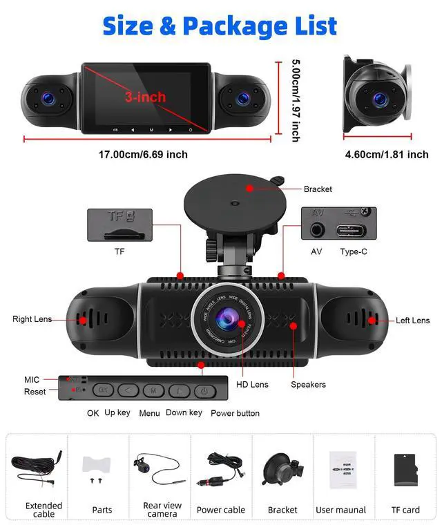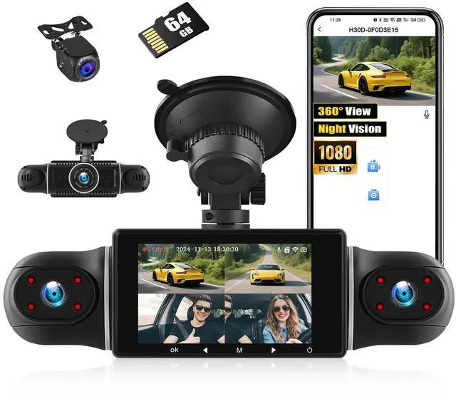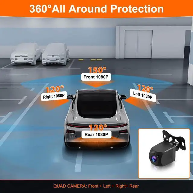 Special Features: 4*1080P, 360 Degrees, Gravity Sensor, Loop Video, Exposure Compensation, Reverse Help, APP Playback. 8.