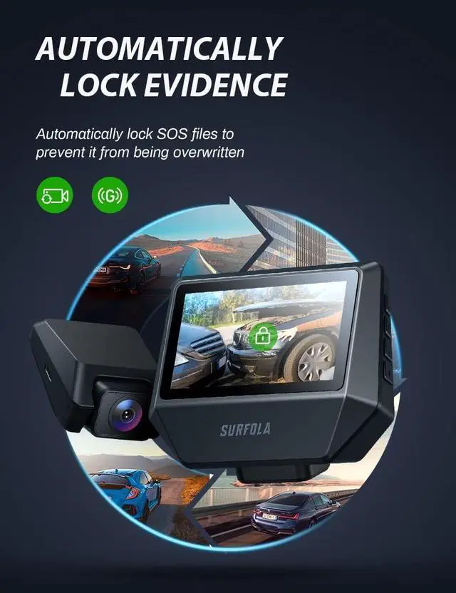 Car license plates can be easily identified. ^^ Multifunctional and Reassuring Car Dash CameraSurfola front and rear dashcam features multiple functions in one: 24H Parking Guard, Loop Recording, 256GB TF card Support, Emergency Video Lock, etc. All these functions can protect your car better. And we also provide 12-months warranty. ^^ Dash Camera with True WDR both Front and RearEquipped with True WDR on dual cameras, SD710 can suppress excessive strong light and fill light at night, and it can also refrain from focusing more distant objects more clearly during the day. Especially the rear cam is much better than other brands at the same price.