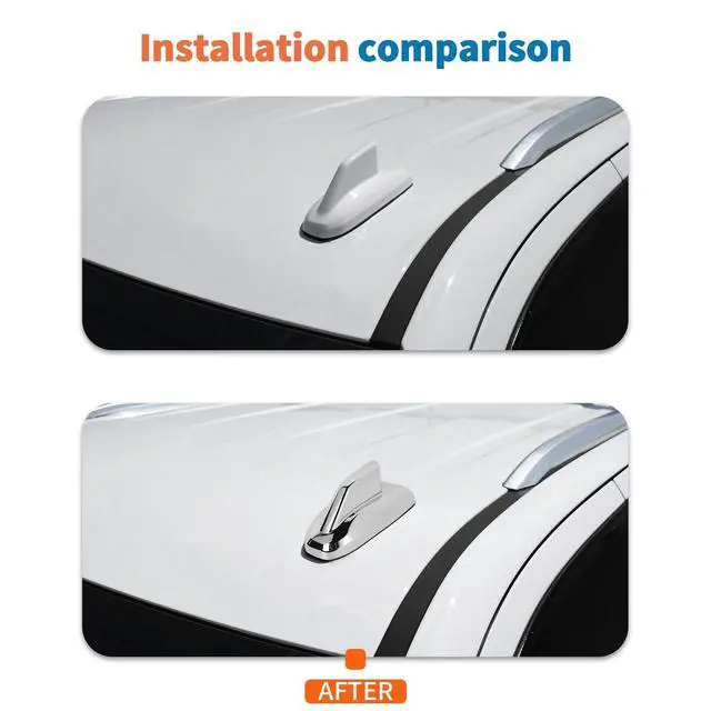 Antenna Trim CoverInstallation Tips: * Please clean the covered area thoroughly; keep it dry without dust; * Heat the adhesive tape with a hair dryer or lighter; * Paste the accessories in the corresponding position and press them with your hand to make them more solid.