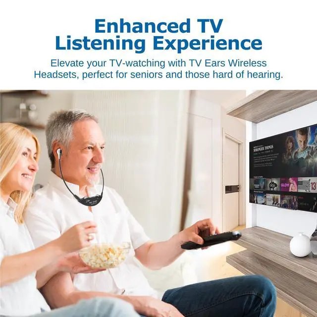^^ WIRELESS FREEDOM: Unleash your TV Ears experience! Our headsets for TV watching deliver extended range up to 50 feet. Perfect for seniors and TV enthusiasts. Follow our easy reset guide for uninterrupted sound.