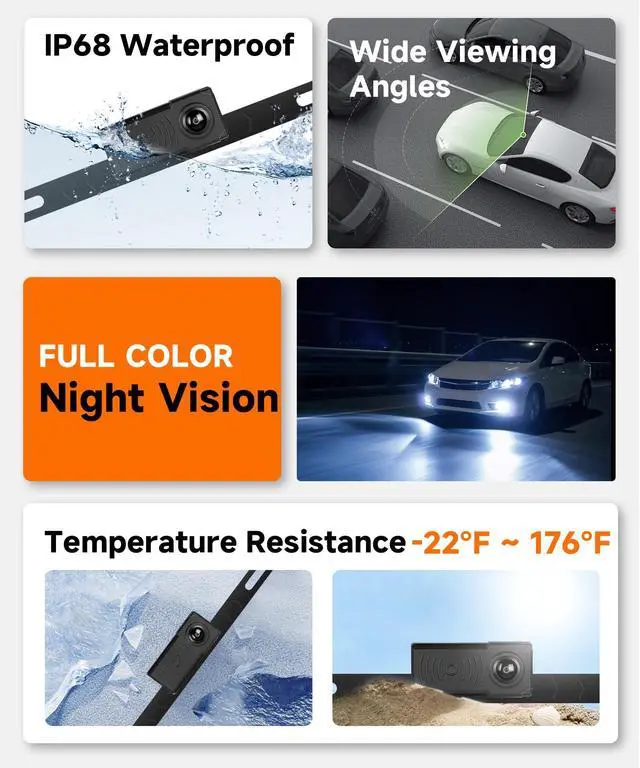 IR Night Vision: 1080P full-color IR night vision delivers sharp, color-accurate images day and nightno blurry or washed-out footage. Automatically switches to night vision in low light, enhancing obstacle detection and driving safety for evening/night reversing ^^