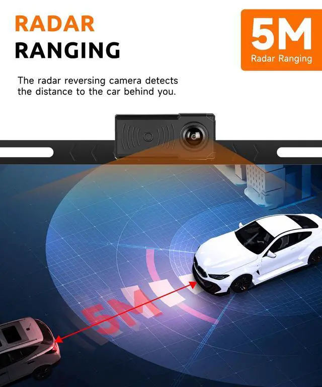 Radar Ranging Detector: Built-in radar ranging detector accurately measures distance to rear obstacles/vehicles, providing real-time distance alerts to maintain a safe reversing gap. Helps avoid collisions and ensures worry-free, precise parking in tight spacesideal for trailers, campers, and large trucks ^^ Super Wide Angle & Intelligent Reverse Line: Super wide-angle lens eliminates left/right/horizontal blind spots for comprehensive rear visibility. Supports intelligent dynamic reverse lines (on/off adjustable), which adapt to steering angle for intuitive parking guidanceperfect for parallel parking and trailer hitching ^^ IP68