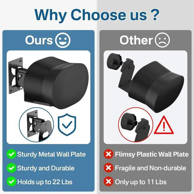 This thoughtful design not only enhances safety by eliminating tripping hazards but also preserves your interior aesthetics - particularly valuable for smart home installations and modern office environments. ^^ Premium Protection Features - Soft silicone padding with anti-slip texture cushions for Sonos Era 300 mount base, combining scratch protection with vibration dampening. The shock-absorbent material reduces resonance by 40% compared to standard mounts, ensuring pristine audio quality while safeguarding your investment. ^^ Industrial-Strength Construction - Crafted from aircraft-grade metal with powder-coated finish, the speaker mount for Sonos Era 300 speaker mount supports up to 15lbs ( 6.8 kg) providing rock-solid stability for demanding audio applications.