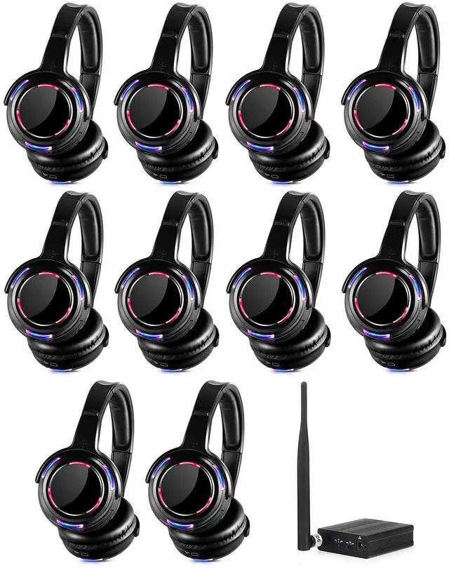 The headphone receiving distance up to 150~200meters, transmitter works up to 500m distance, dancers can enjoy it anywhere in the range, and not cause any noise pollution to the environment ^^ Flood your Silent Disco in a sea of colour with our LED headphone pulsing lights that flash to the beat of the music - by far the most stylish Silent Disco Headphones on the market. ^^ Rechargable and portable wireless headphones for silent party, meeting, education, broadcasting, tourism and so on. Connect to whatever you want to use (i.